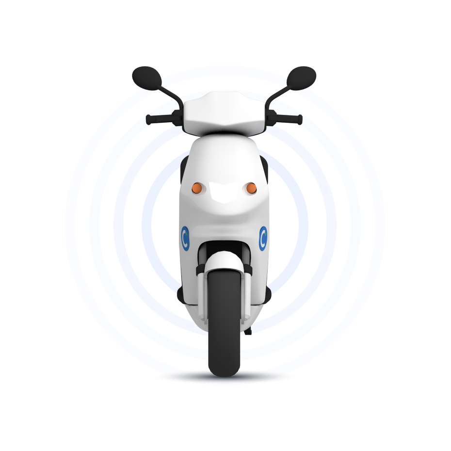 Repérez le point bleu le plus proche de vous : c’est un Cityscoot actuellement disponible. Réservez-le et c’est parti !