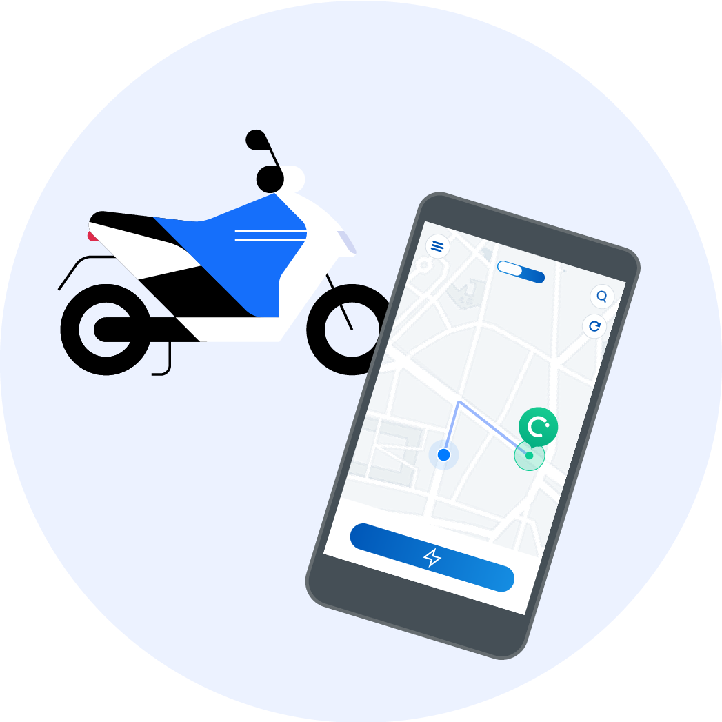 Il y en a toujours un près de vous ! Repérez dans l’application le scooter le plus proche ou autour de l’adresse de votre choix.