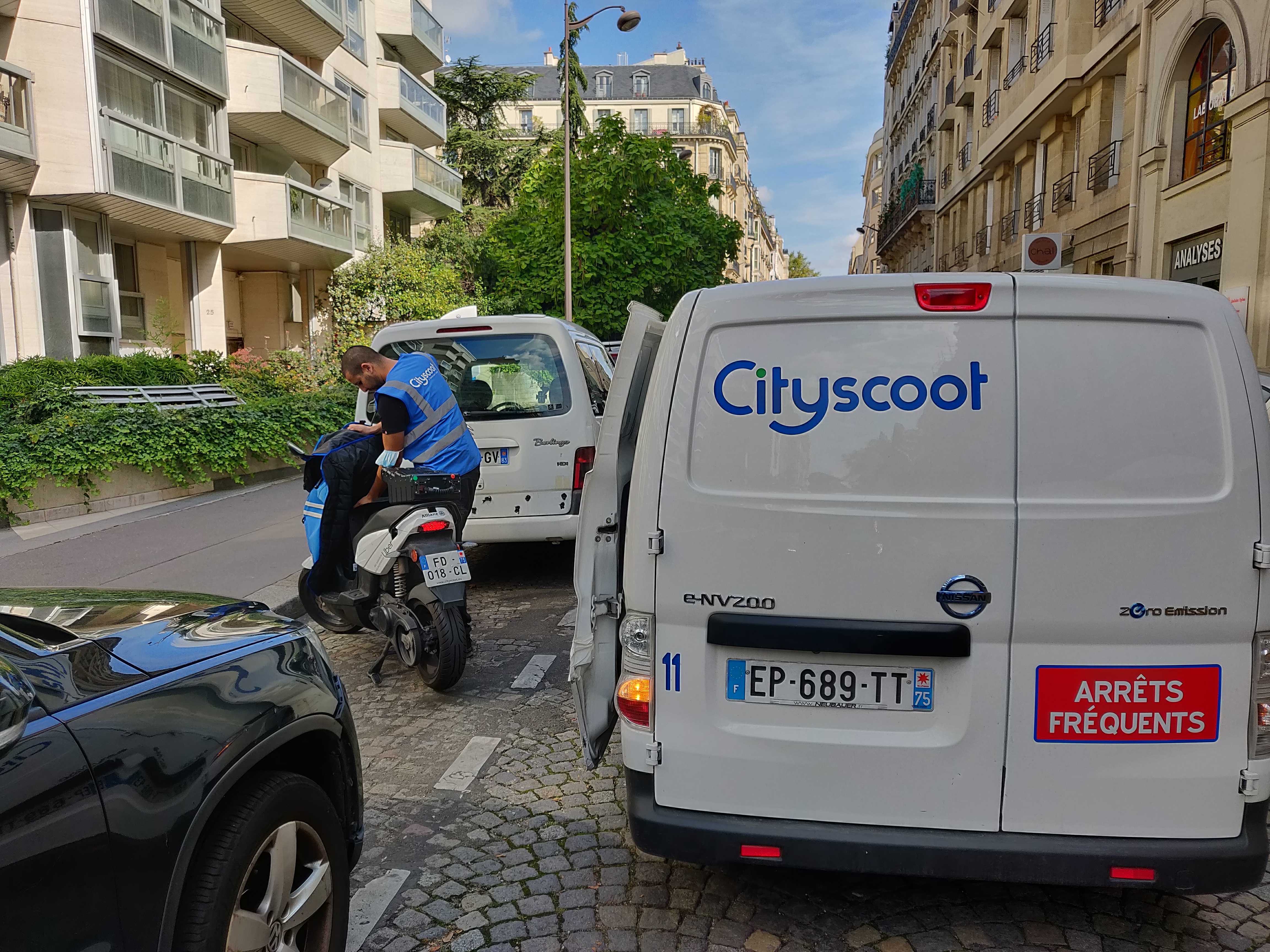 Camionnette électrique Cityscoot roulant à Paris